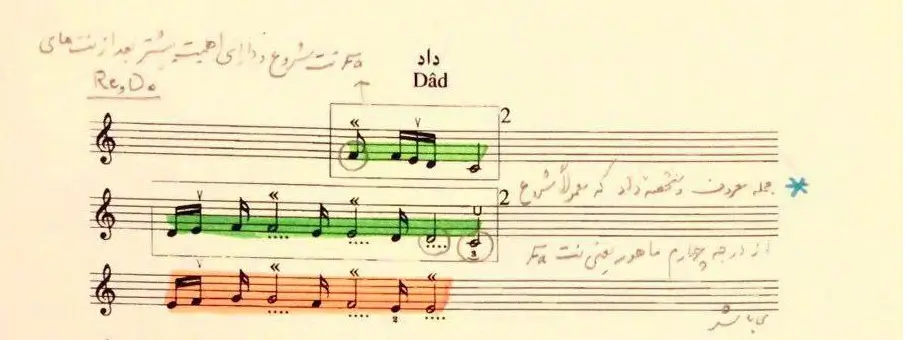 La musique officielle de l’Iran, placée dans une collection écrite appelée Radif Dastgâhi (répertoire), catégorise les mélodies en fonction des distances et de la position des notes, pour que les musiciens, chanteurs et compositeurs puissent improviser ou composer sur la base de ces airs rédigés et prédéterminés.